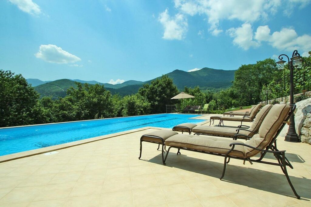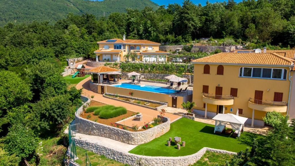 Apartments Villa BV – A Peaceful Oasis with Panoramic Sea and Mountain Views Set on 20,000 m² of private forest bordering the Učka Nature Park, Villa BV offers a unique blend of luxury, nature, and complete tranquility. Guests can enjoy a shared outdoor salted water pool with a spacious terrace boasting panoramic views of the Adriatic Sea, nearby islands, and Mount Učka, as well as elegant apartments decorated in a timeless classic style with modern amenities.