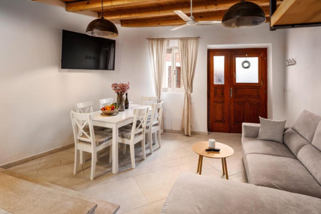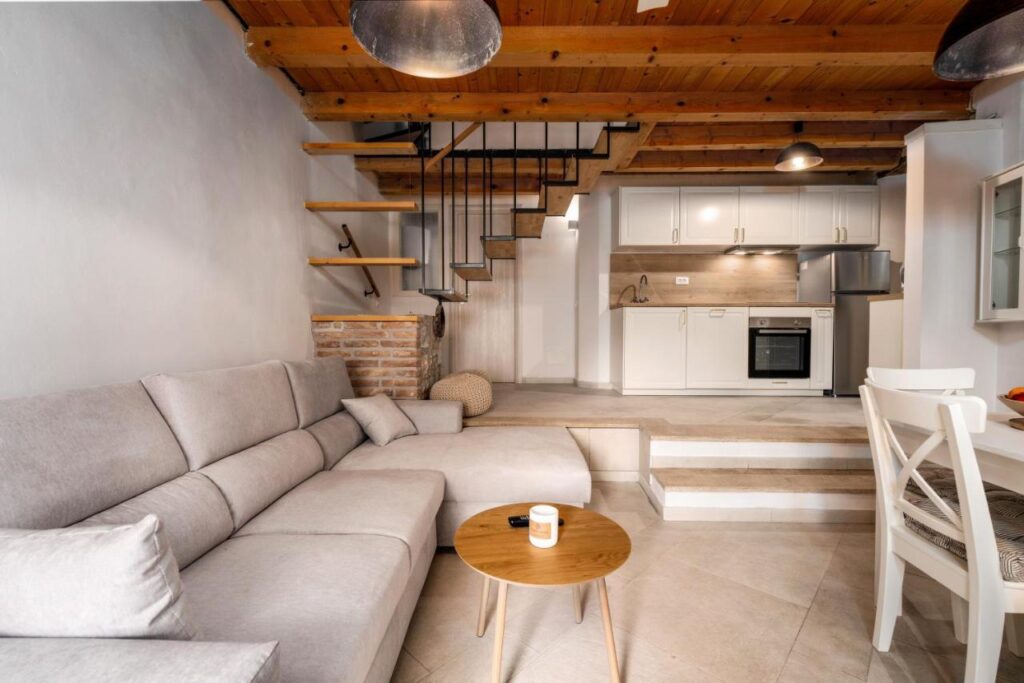 Modern Amenities: Guests enjoy free WiFi, air-conditioning, streaming services, and a washing machine. Additional amenities include a bidet, hairdryer, coffee machine, city view, and outdoor furniture.