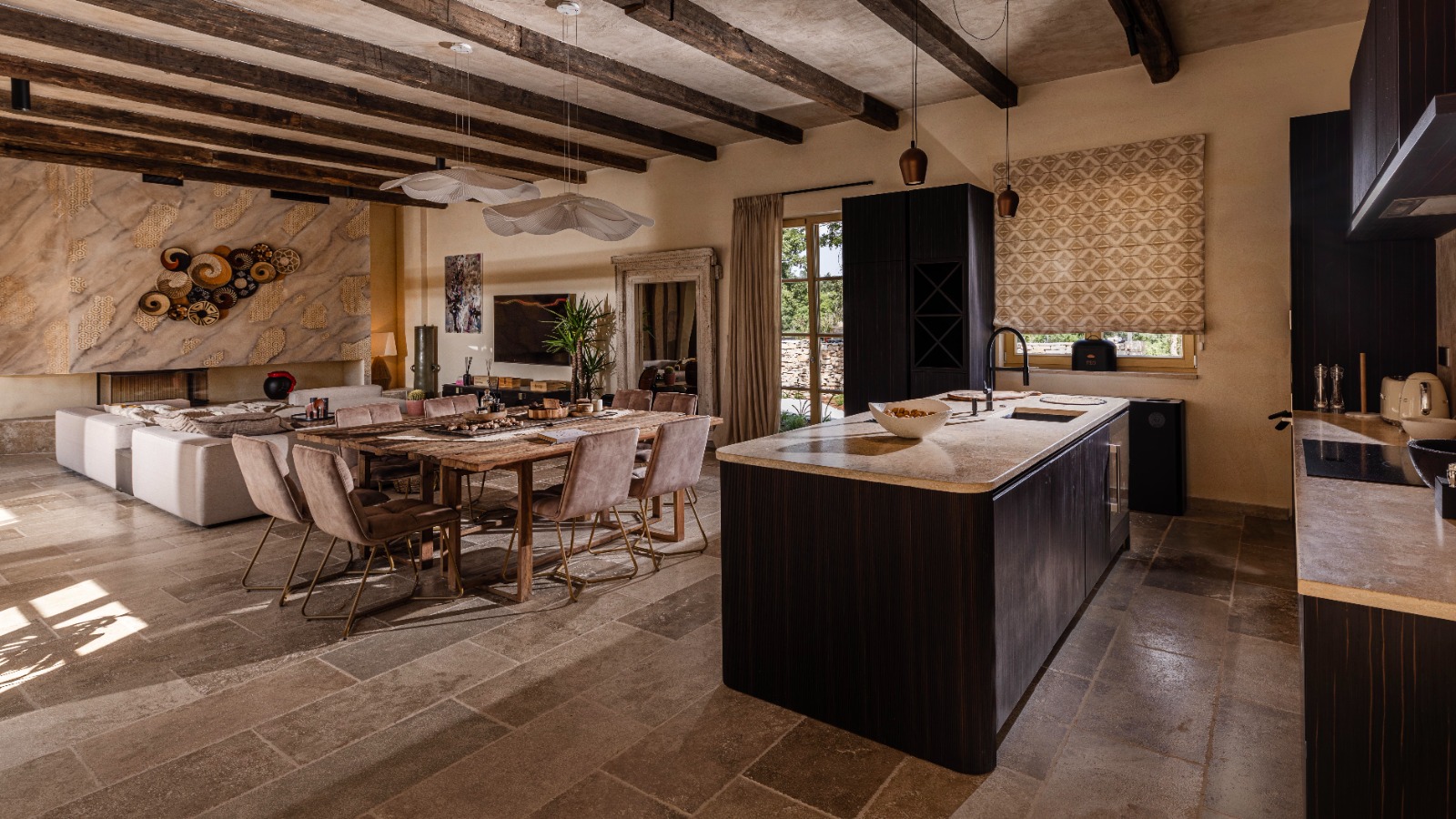 Completely secluded luxurious estate near Sv. Petar u Ĺ umi. Around 250 sqm living area with 3 bedrooms, separate master bedroom with it’s own living room, pool area with summer kitchen, outdoor lounge and 14x4m spacious infinity pool. Beautiful views on the surrounding areas town Motovun, vineyards, olive groves and truffle woods. Suitable for 8 adults and 2 kids.