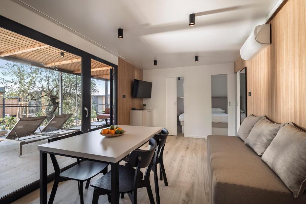 Beachfront Location: Maistra Camping Koversada in Vrsar offers direct beachfront access, a lush garden, and a spacious terrace. Guests can relax by the shore or enjoy the outdoor dining area.