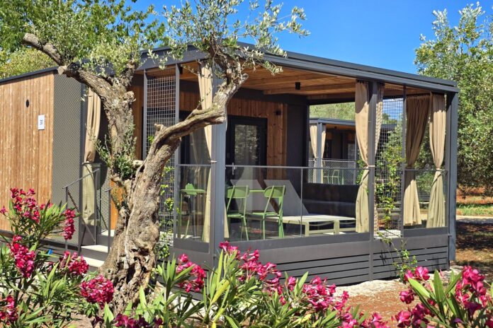 Beachfront Location: Maistra Camping Koversada in Vrsar offers direct beachfront access, a lush garden, and a spacious terrace. Guests can relax by the shore or enjoy the outdoor dining area.