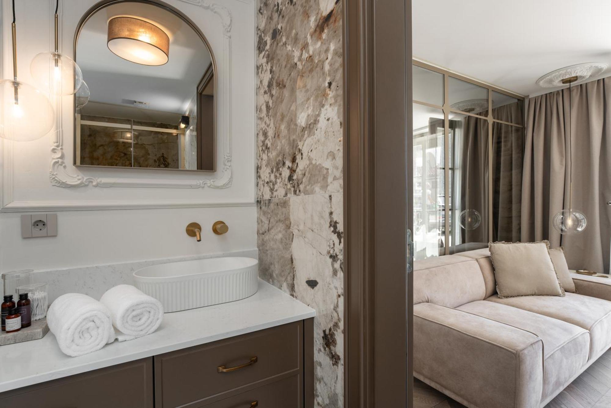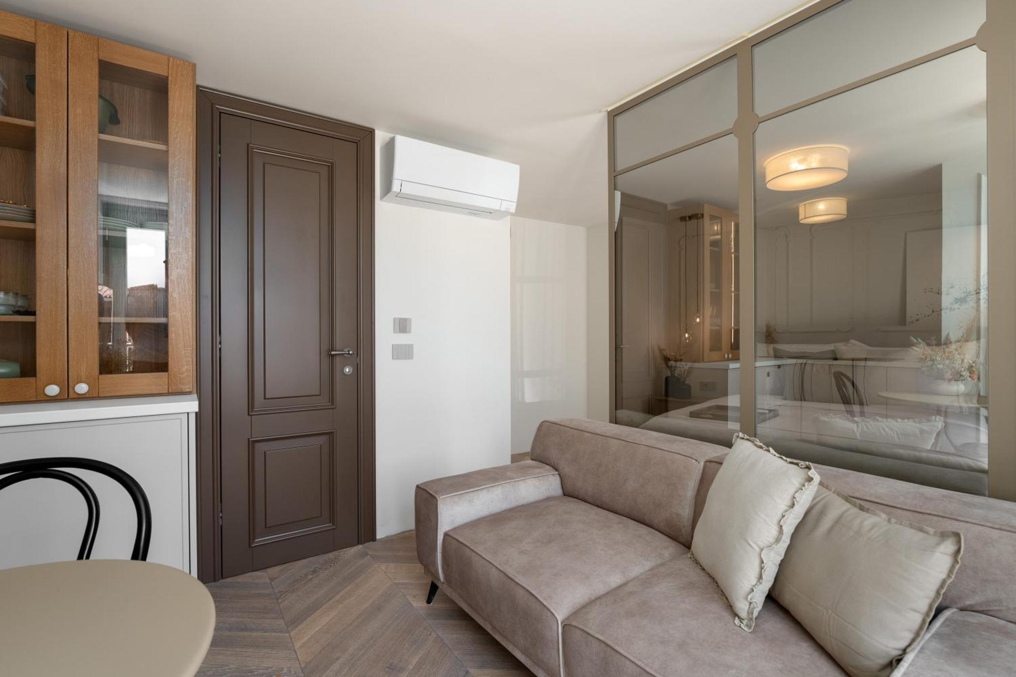 Modern Amenities: The apartment includes free WiFi, a TV, and a soundproofed environment. Additional amenities include a hairdryer, coffee machine, and parquet floors. Free off-site parking is available for guests.