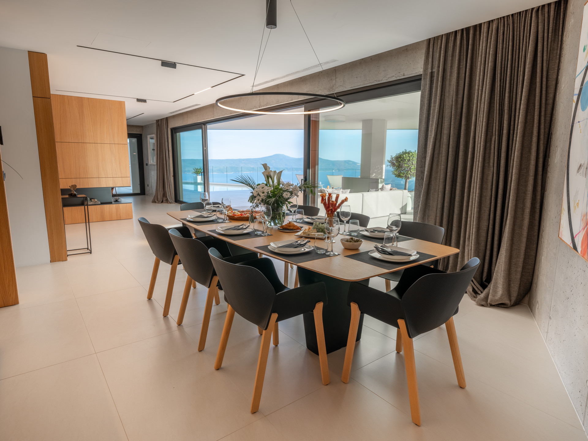 The kitchen is fully equipped, ready for you to cook your favorite meals. There are four bedrooms, each designed for comfort and style. Enjoy your meals in the dining area or outside on the terrace with beautiful views. The outdoor area is wonderful, with a spacious terrace, sun loungers, and a green garden. Spend your days swimming, sunbathing, or just enjoying the peaceful surroundings. Villa is close to Opatija’s attractions like beaches, parks, and restaurants. Explore the lovely town and its natural beauty. Villa 3.0 has everything you need for a relaxing and fun holiday. Enjoy the luxury, the pools, and the comfort of this beautiful home. More