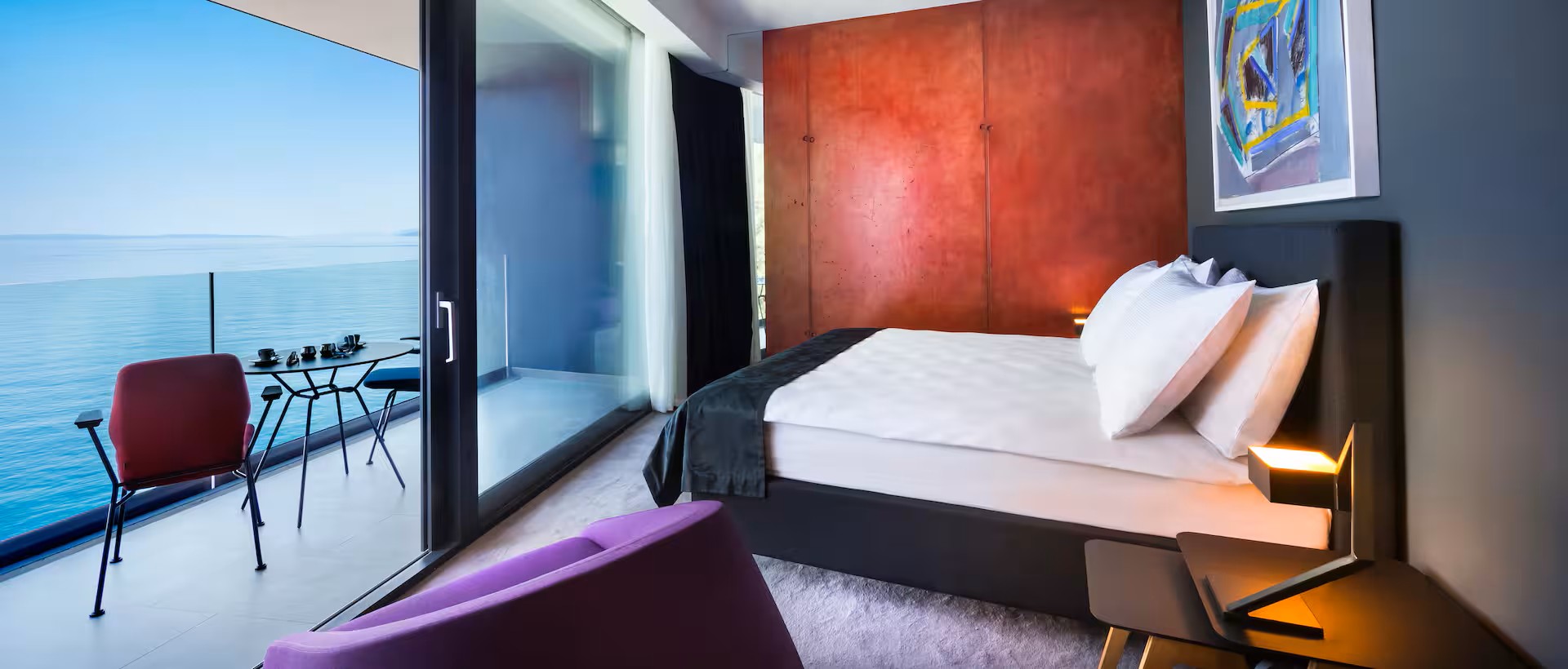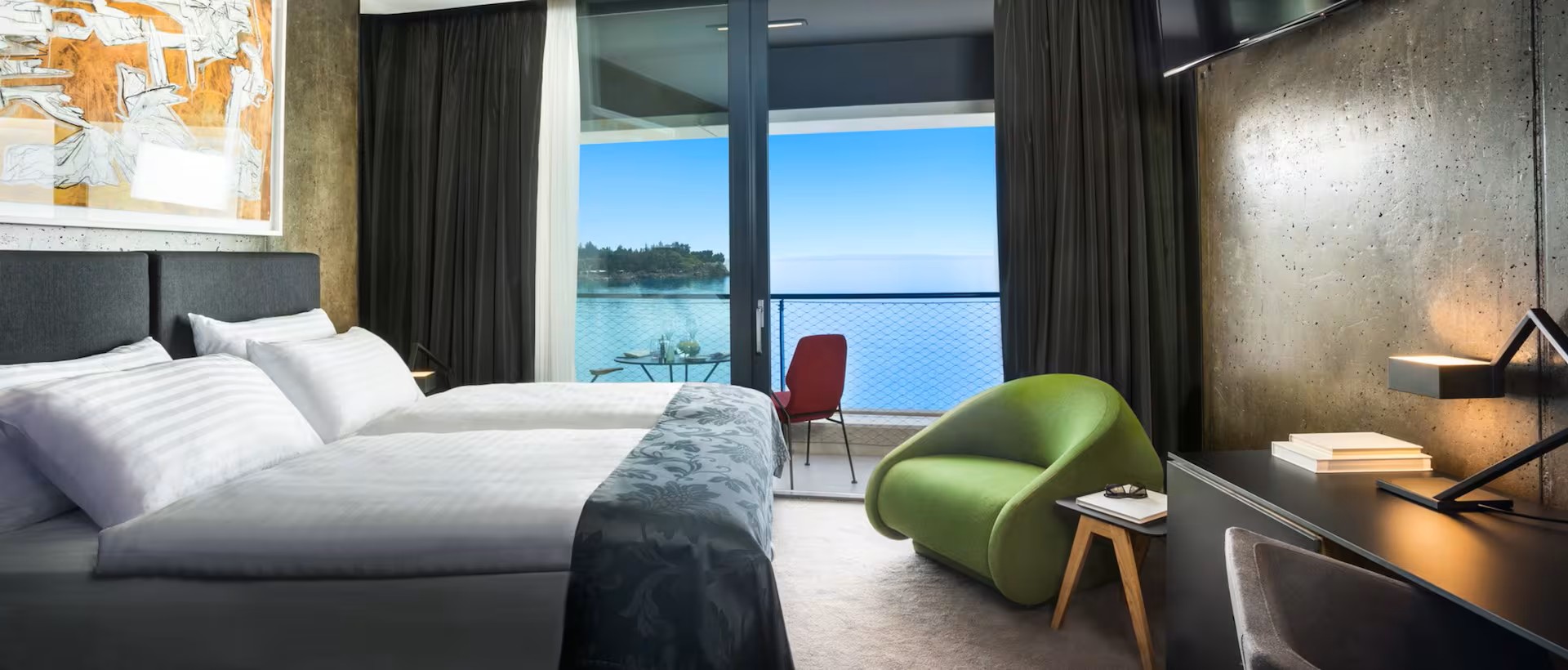 Every room features stylish Croatian design, plush King or Twin beds, and private sea-view terraces or balconies. With elegant lounge areas, luxurious baths, and modern amenities like free WiFi and flat screen TVs, guests enjoy comfort and refinement in every detail.