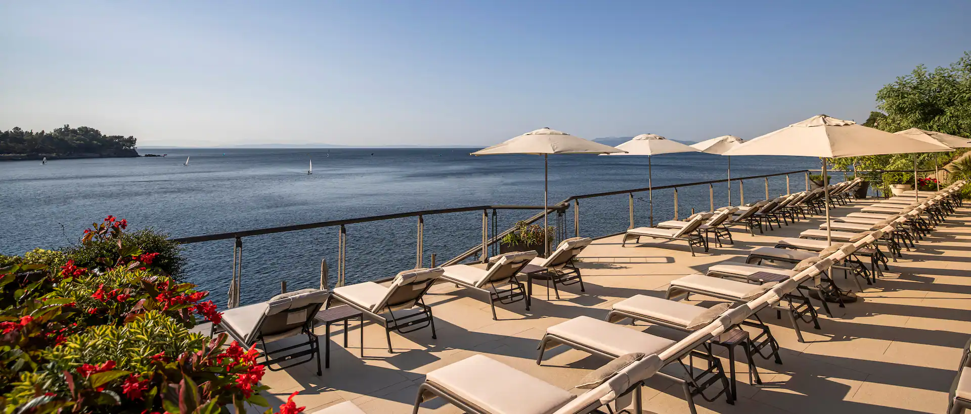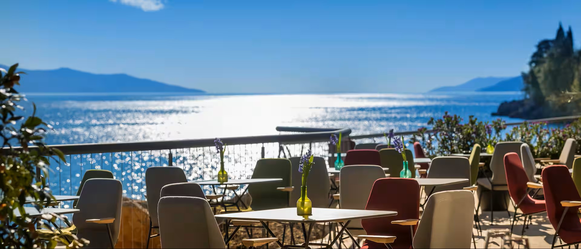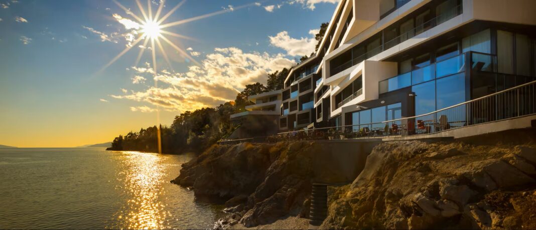 Every room at Boutique and Design Hotel Navis, a Member of Small Luxury Hotels of the World, offers uninterrupted sea views through glass walls and private terraces. Guests can relax by the shorefront pool and spa or dine on the clifftop restaurant terrace overlooking Kvarner Bay. Water sports, forest trails, and historic landmarks are easily accessible nearby.
